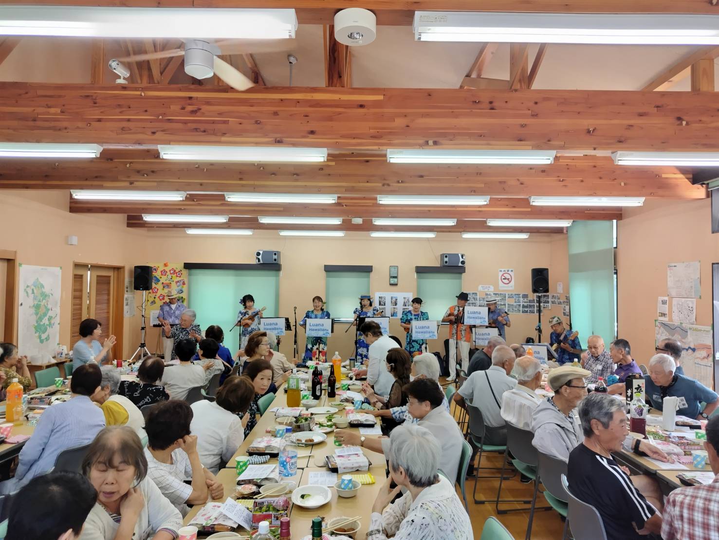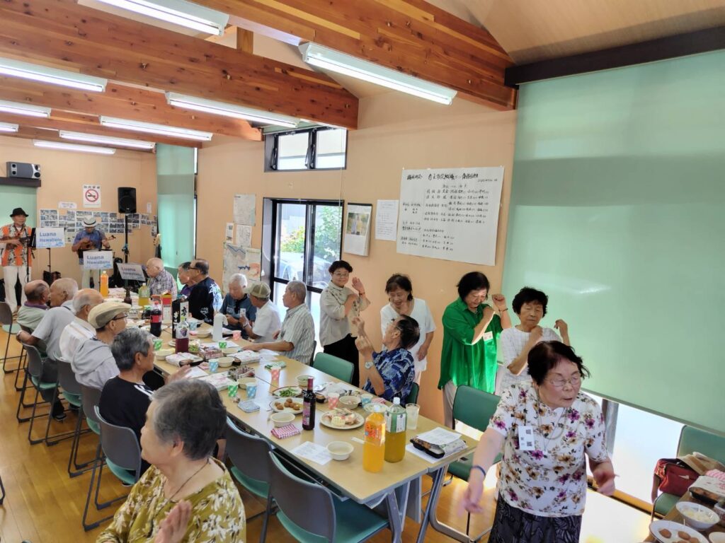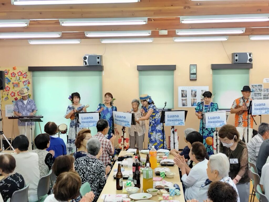 2025年10月1日 / 最終更新日時 : 2025年10月1日 柴田 幸雄 トピックス 梅林ことぶき会の敬老食事会を楽しく開催! 9月7日(日)梅林ことぶき会の敬老食事会を町会のふるさと会館で開催しました。 アトラクションとして、ハワイアン演奏を「ルアナ・ハワイアンズ」のメンバー8人に来ていただき、歌や演奏で楽しませてくれました。こちらのリクエストに応えて、歌を歌い演奏に合わせて輪踊りもできて有意義な食事会となりました。 投稿者 梅林ことぶき会 渡辺義孝