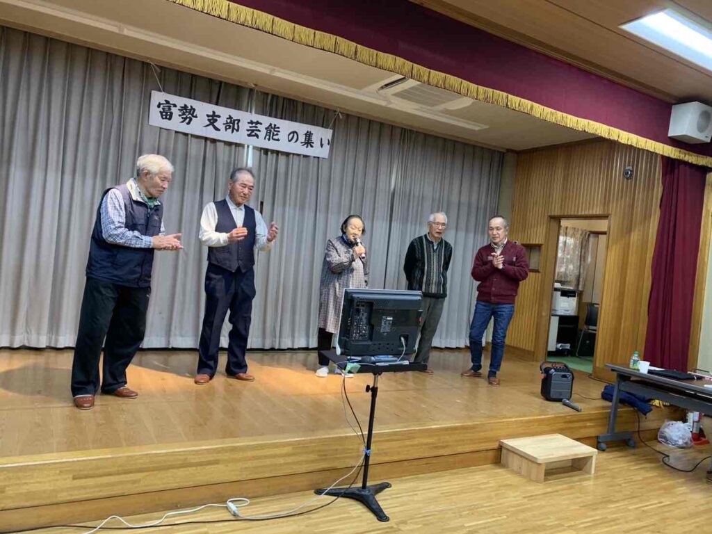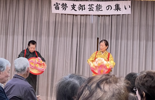 2025年12月4日 / 最終更新日時 : 2025年12月4日 柴田 幸雄 トピックス 「富勢支部 芸能のつどい」を楽しく開催! 富勢支部4クラブ合同の「芸能の集い」を11月20日(木)に前原会館で開催しました。 各クラブの歌自慢の会員37名が舞台に上がり、カラオケで熱唱を披露しました。 また、昼食前にハーモニカ演奏、舞踊も披露され一段と場が盛り上がりました。 恒例で終盤に各クラブの会長がそろい踏みし、杉本支部長がおおとりで「夜霧の慕情」を熱唱されました。 最後に参加者全員で「明日があるさ」を合唱してお開きになりました。 投稿者 富勢支部HP連絡員 市橋 泰二