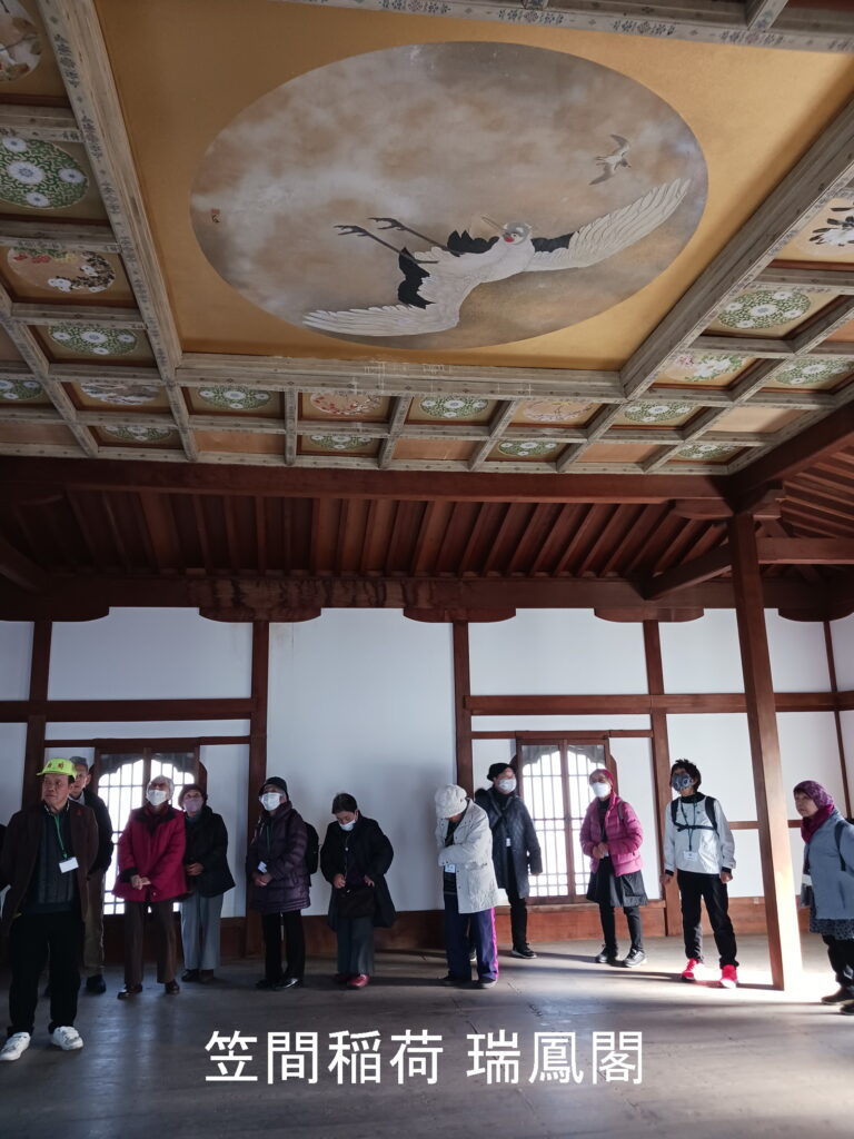 2月9日、37名が参加。前日の大雪が嘘のような快晴に恵まれ、午前は、益子JAのいちご園で、大きくて甘い旬のいちご狩りを堪能。次いで酒蔵見学・試飲を通じての研修でした。茶力経ヶ坂での昼食の後、午後は笠間稲荷神社を参拝しました。通常は非公開の瑞鳳閣を特別見学し、最後は健康長寿の祈祷を受けるという盛り沢山の内容でした。